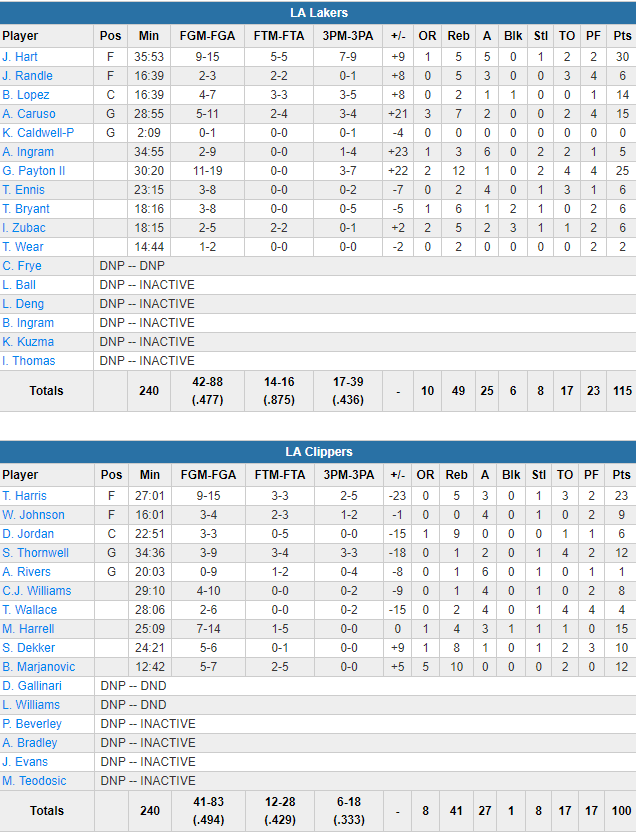 Los Angeles Clippers – Los Angeles Lakers 100-115