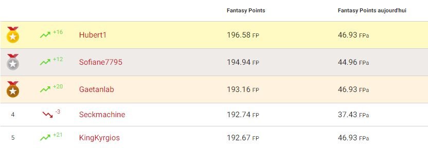 Fantasy League BI : les tops, flops et bonnes affaires du jour + le classement