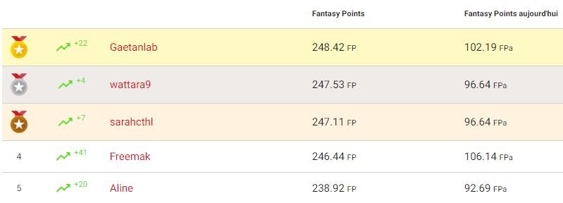 Fantasy League BI : les tops, flops et bonnes affaires du jour + le classement
