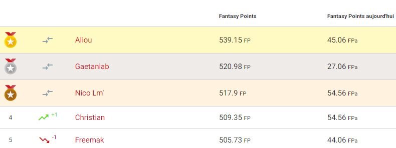 Fantasy League BI : Les tops, flops et bonnes affaires du jour; Aliou garde la tête du classement
