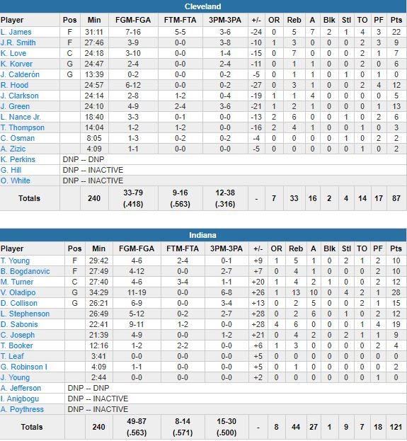 - Game 6 à Indianapolis: Pacers 121, Cavaliers 87