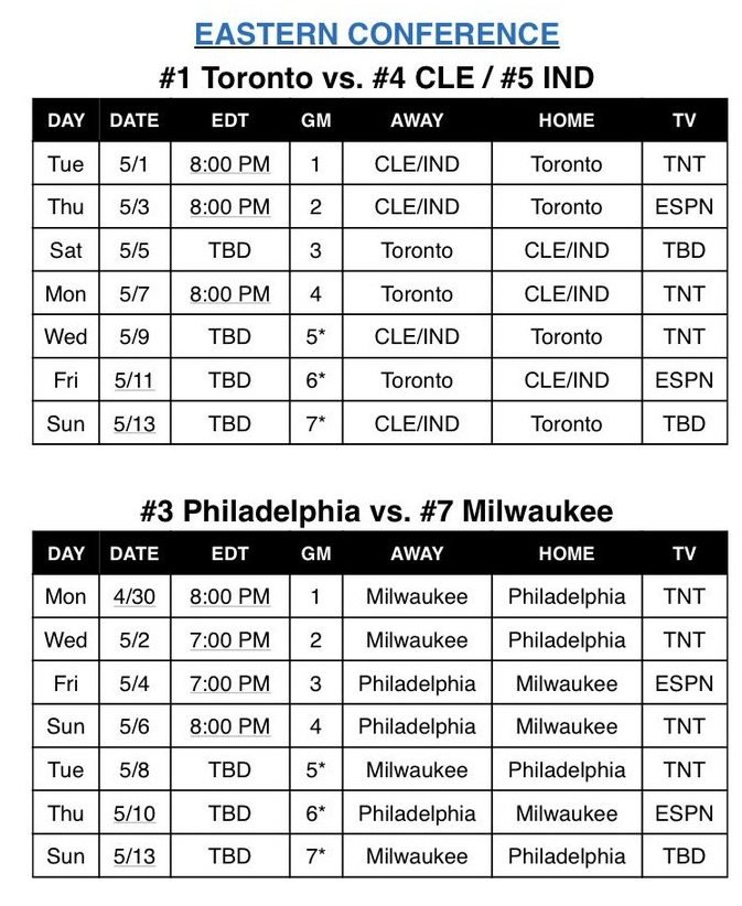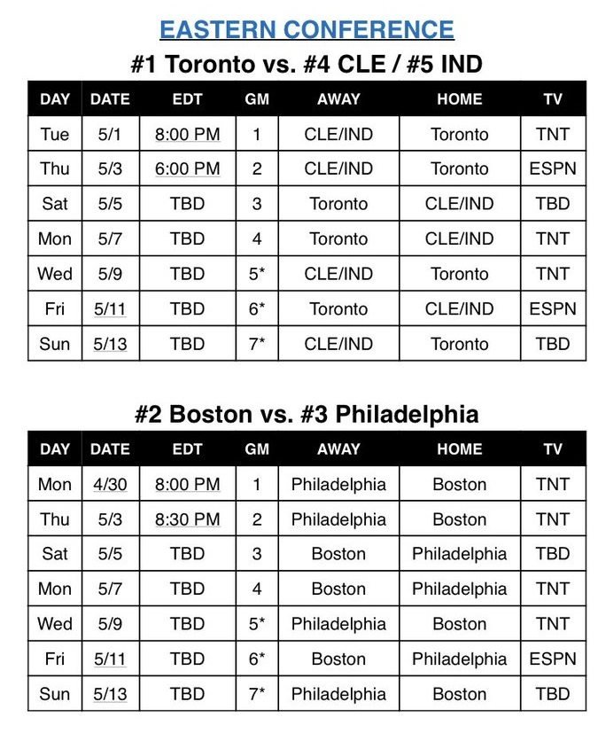 Si on connait déjà les deux séries du second tour des playoffs à l’Ouest, à l’Est il reste encore deux billets à prendre. Les Bucks et les Celtics vont s’affronter dans un Game 7, tout comme les Pacers et les Cavaliers. Malgré ça le second tour débute ce soir et la NBA a déjà dévoilé des calendriers pour le second tour en fonction des vainqueurs.