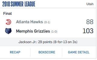Summer League : Les résultats des 4 premiers matchs; Jaren Jackson Jr. cartonne