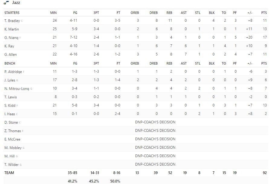 On note les 29 points à 9/15 dont 8/13 à 3-points de Jaren Jackson Jr. (4ème choix de la draft) pour les Grizzlies, les 23 points, 8 rebonds et 6 passes de De’Aaron Fox pour les Kings, les 24 points de Derrick Jones Jr. pour le Heat, les 23 points et 7 rebonds de Moritz Wagner pour les Lakers mais aussi la maladresse de Lonnie Walker IV (Spurs, 3/16) et de Grayson Allen (Jazz, 3/16)