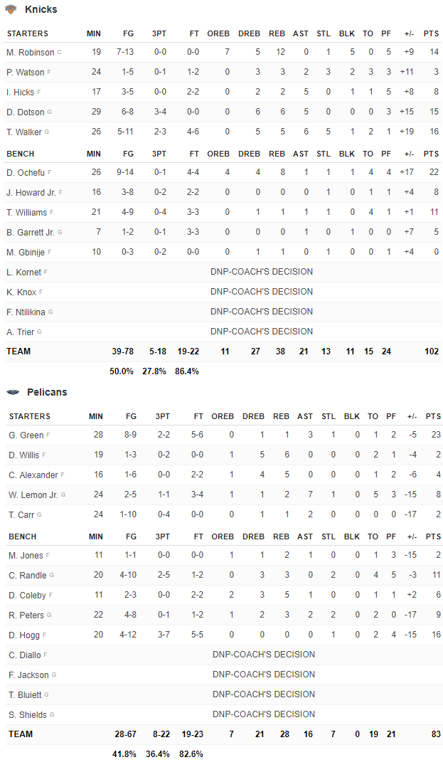 Knicks – Pelicans 102-83