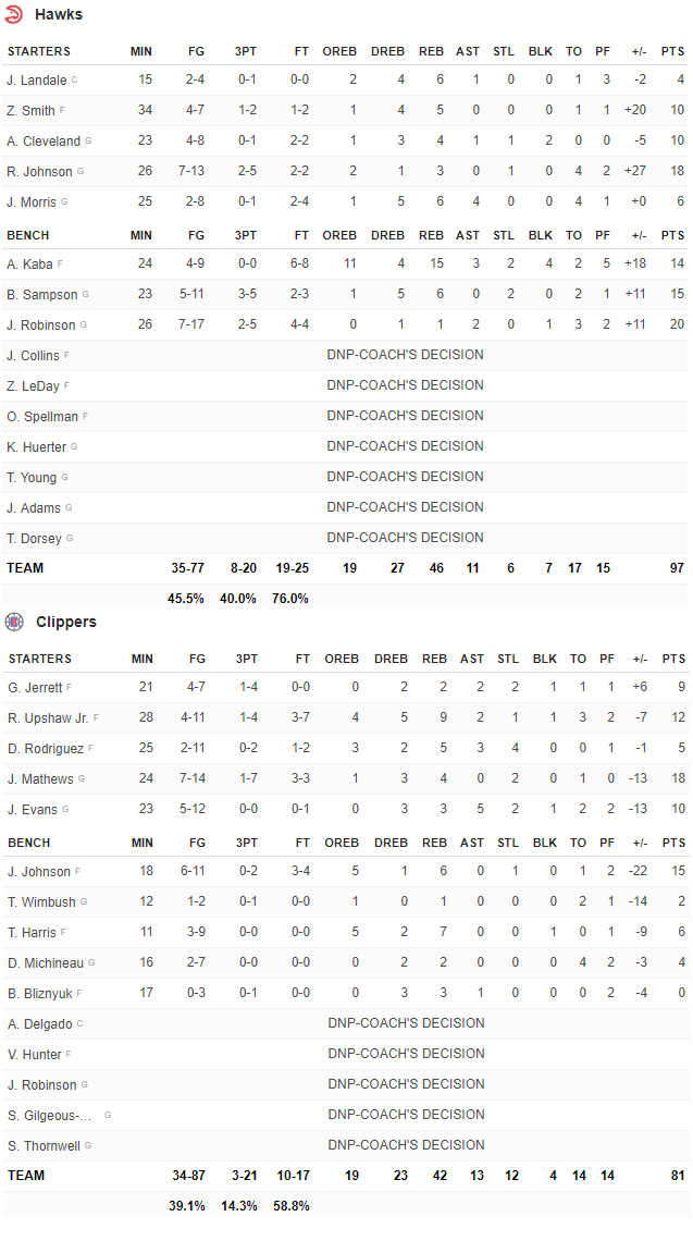 Hawks – Clippers 97-81