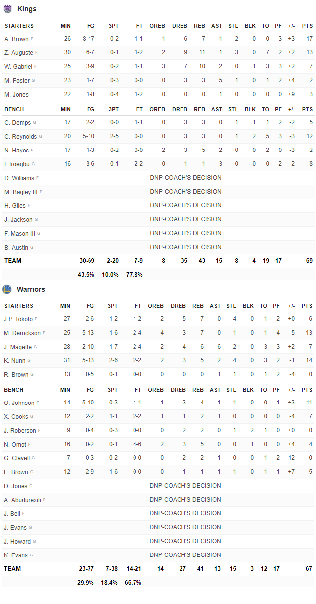Kings – Warriors 69-67