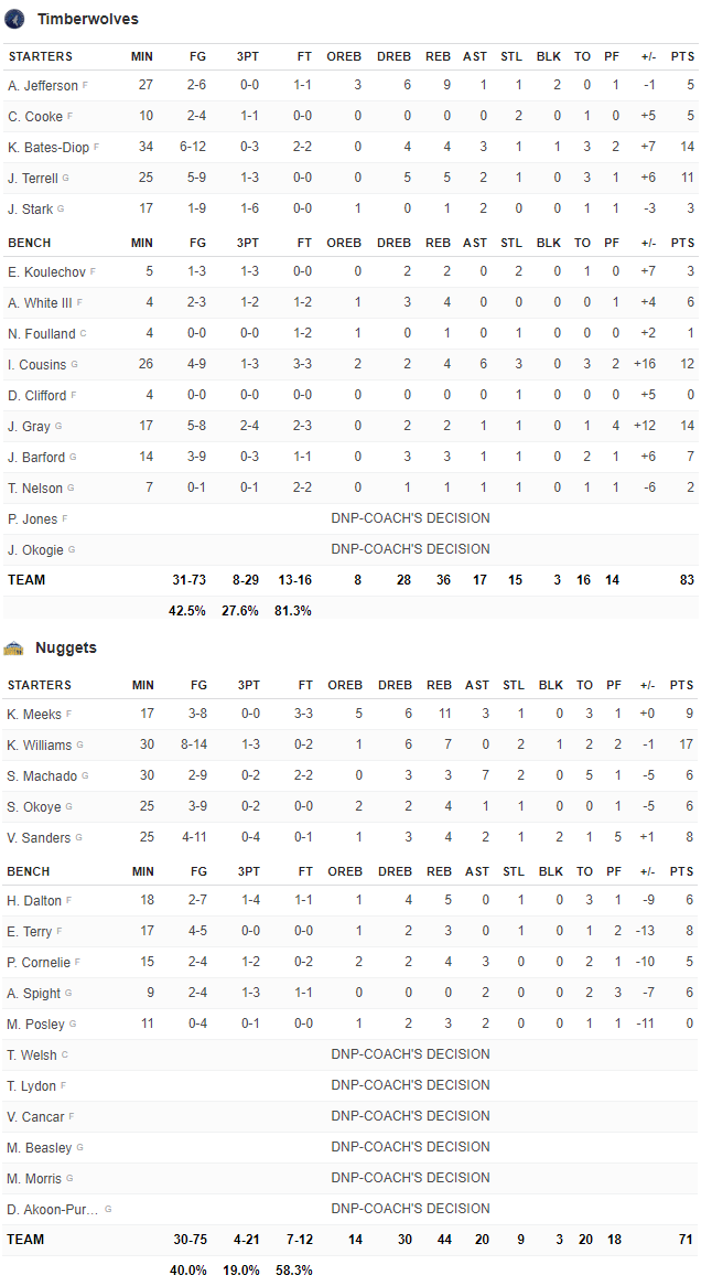 Wolves – Nuggets 83-71