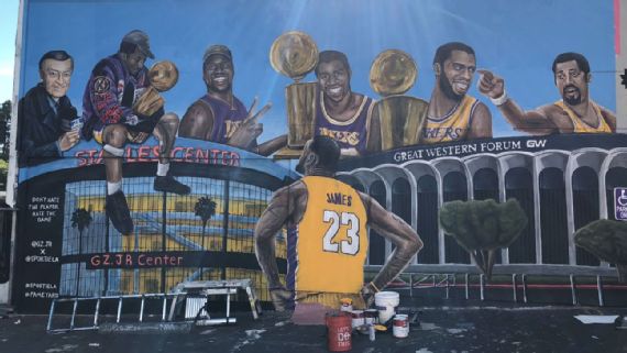 Depuis la signature de LeBron James à Los Angeles, plusieurs artistes ont signé des fresques à son effigie dans les rues de la ville. Sauf qu’à chaque fois, ces dernières ont été vandalisées. Puis refaites. La présidente et co-propriétaire de l’équipe, Jeanie Buss, a abordé le sujet avec Mark Willard de Fox Sports :