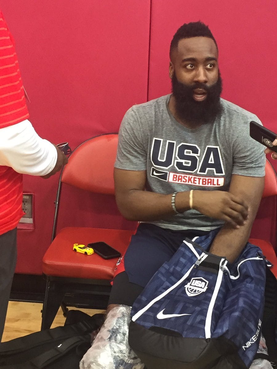 Gregg Popovich est un génie épisode 254 : Il a promis aux joueurs de Team USA qu’il offrirait une voiture à celui qui gagnerait un concours de shoot. James Harden a gagné, et sa récompense est quelque part sur la photo..