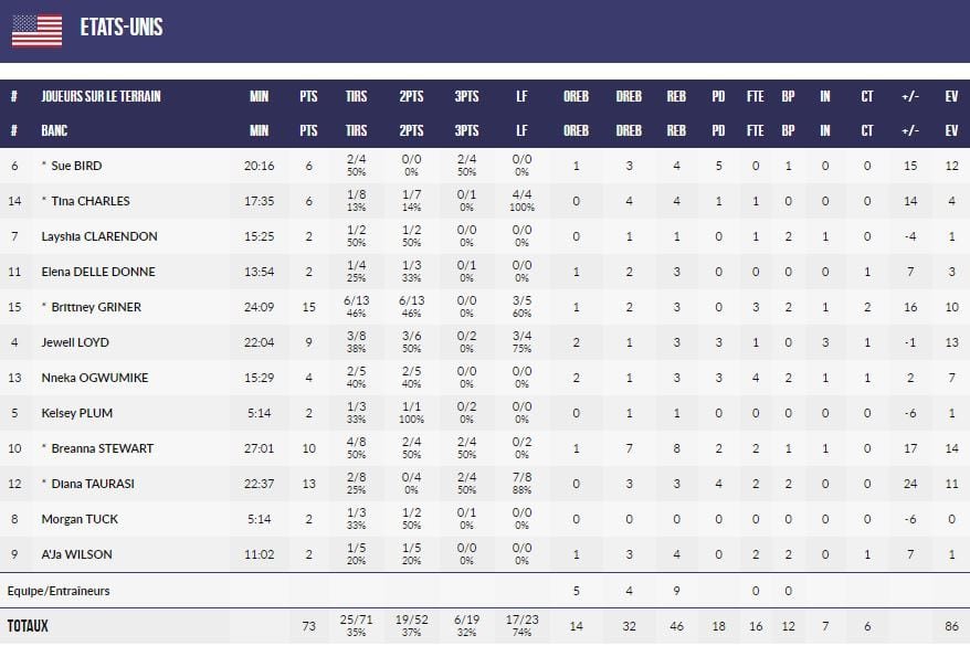 Devant 35-27 à la pause, Brittney Griner (15 points à 6/13 et 3 rebonds), Diana Taurasi (13 points, 2/8, 3 rebonds, 4 passes), Sue Bird (6 points et 5 passes) et compagnie ont donné un grand coup d’accélérateur fatal aux espoirs de leurs adversaires dans le 3ème quart-temps (26-11).