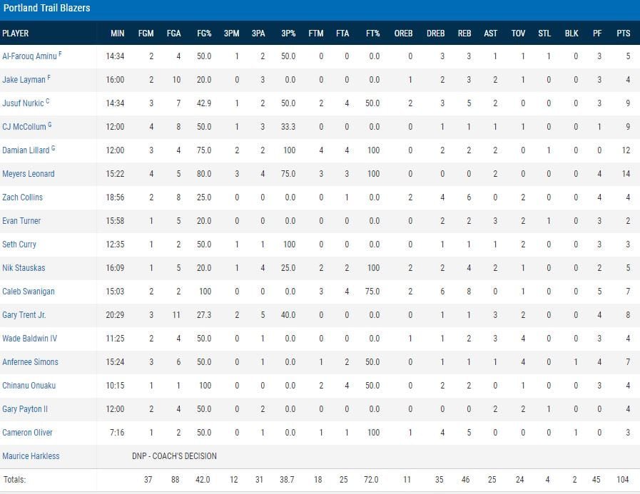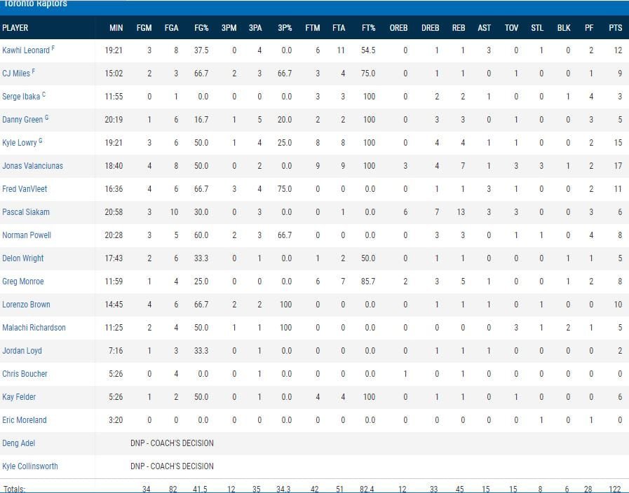 Toronto Raptors vs Portland Trail Blazers 122-104