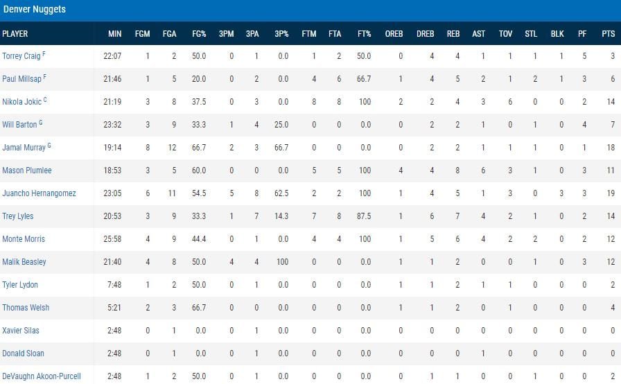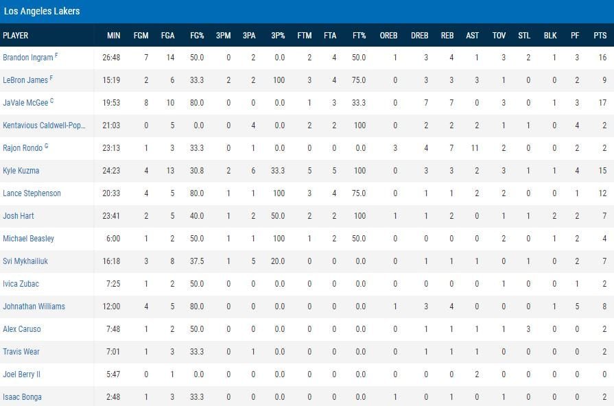 Dimanche 5 matchs étaient au programme de la pré-saison et dans le match le plus attendu de la soirée, LeBron James faisait ses débuts sous son nouveau maillot de Los Angeles à San Diego face aux Nuggets. L’ex-Cav a joué 15 minutes pour 9 points à 2/6, 3 rebonds et 3 passes, son équipe s’est inclinée contre Juancho Hernangomez (19 points) & Co.