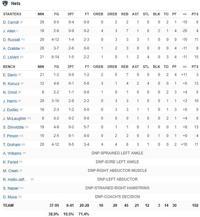 Andre Drummond a sorti du lourd pour permettre à Detroit de battre OKC avec 31 points à 14/21 et 16 rebonds en 33 minutes (Blake Griffin n’a pas joué). En face Dennis Schröder signe 21 points à 5/16, 5 rebonds et 9 passes en 26 minutes, Steven Adams 17 points à 8/15 et 12 rebonds et Timothé Luwawu-Cabarrot 7 points à 2/6, 3 rebonds et 1 passe en 22 minutes.