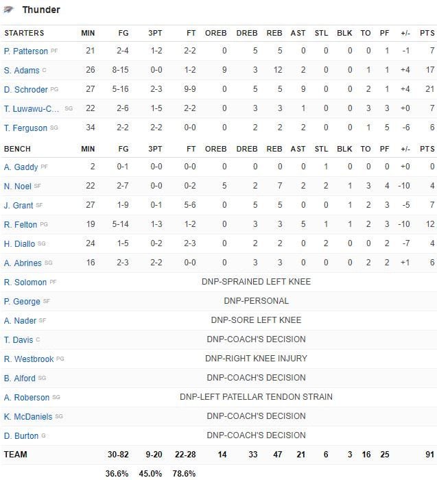 Oklahoma City Thunder – Detroit Pistons 91-97