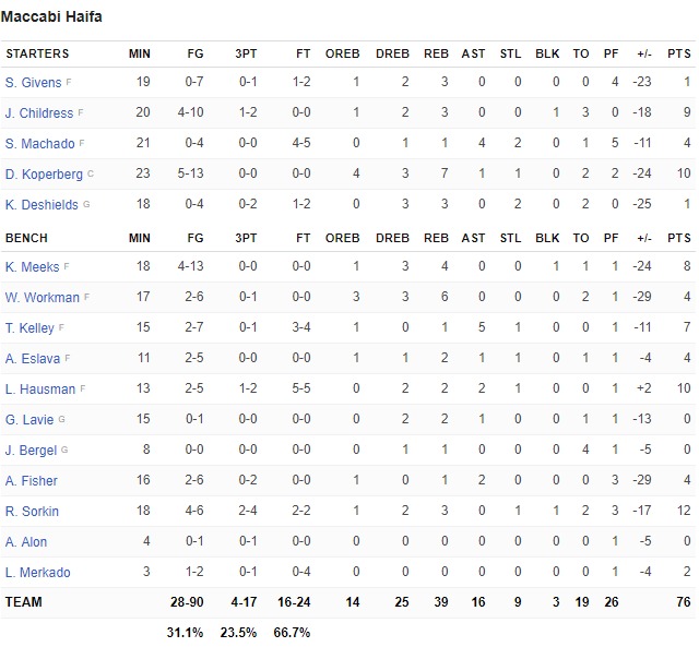 Los Angeles Clippers – Maccabi Haifa 124-76
