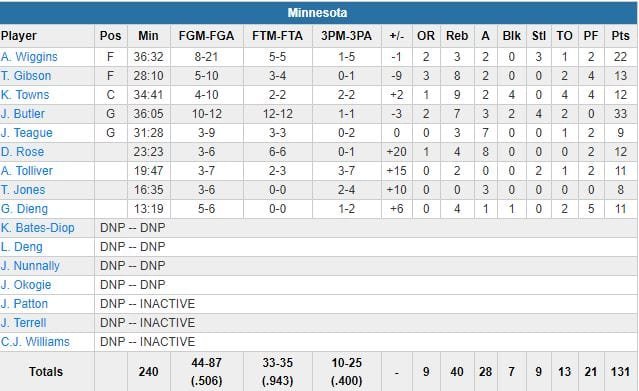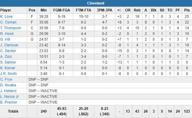 Andrew Wiggins a ajouté 22 points (8/21, 3 rebonds, 2 passes) et 4 autres joueurs ont signé au moins 10 points, dont Karl-Anthony Towns avec un très timide 12 points à 4/10, 9 rebonds et 4 contres en 34 minutes. Menés 36-34 en début de 2ème quart-temps, les Cavaliers ont dû attendre qu’il reste 4’02 à jouer pour se rapprocher à nouveau des locaux, 121-117, grâce à un layup du rookie Collin Sexton (14 points à 6/9 en 23 minutes). Ils sont revenus dans le match grâce à un 24-10 porté par Love (13 points). Cedi Osman (22 points à 9/17, 3 rebonds et 8 passes) a entretenu l’espoir avec un 3-points pour revenir à 125-120, mais a raté le suivant alors que Jeff Teague avait manqué un layup de l’autre côté.
