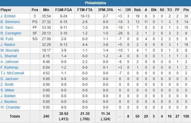 Joel Embiid et Ben Simmons avaient pourtant sorti le grand jeu ou presque avec respectivement 30 points à 9/24, 19 rebonds, 6 passes et 3 contres et 14 points à 6/15, 13 rebonds et 11 passes. J.J. Redick signe 19 points en sortie de banc pour une équipe de Philadelphie qui sortait d’une défaite d’un point en prolongation à Detroit, mardi.