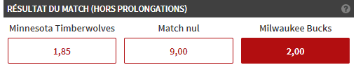 On tente notre second pari sur la rencontre entre les Wolves et les Bucks. Belle affiche en perspective et les Wolves, à domicile, sont annoncés légèrement favoris. Ils pourraient toutefois être privés d’Andrew Wiggins, et surtout, ils tombent face à des Bucks toujours invaincus depuis le début de saison. Ces derniers font forte impression et ce soir, on les voit bien continuer leur série dans le sillage de Giannis Antetokounmpo et Kris Middleton.
