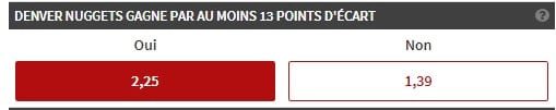 On tente notre second pari toujours sur la rencontre entre les Nuggets et les Pelicans. Ce sont deux équipes en forme en ce début de saison mais ce soir il ne devrait pas y avoir photo. Les Nuggets devraient largement l’emporter avec les absences d’Anthony Davis et Elfrid Payton du côté de New Orleans. A domicile les Nuggets sont redoutables et on voir une victoire d’au moins 13 points des locaux.