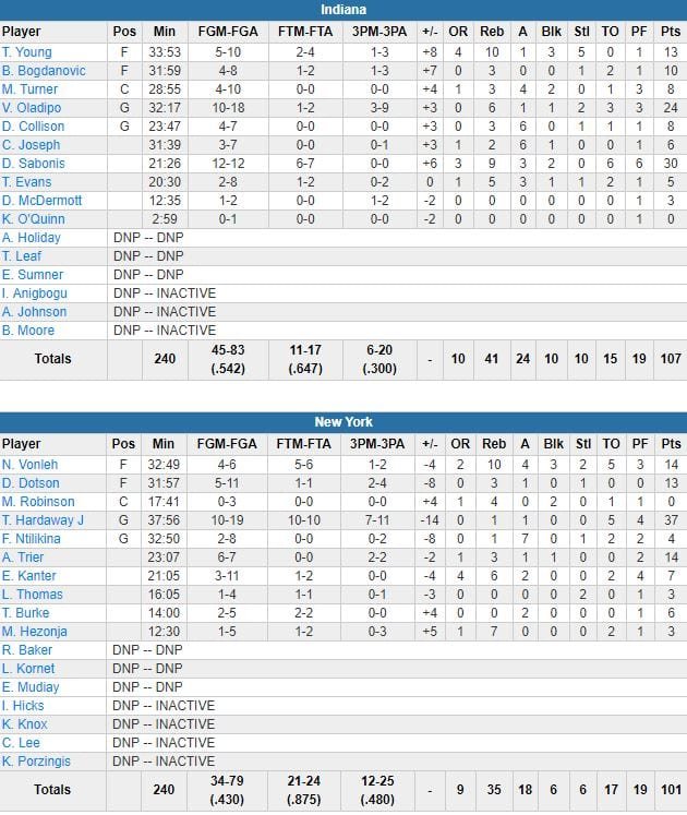 New York Knicks – Indiana Pacers 101-107