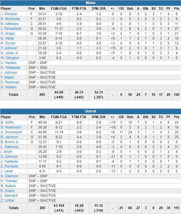 Detroit Pistons – Miami Heat 115-120