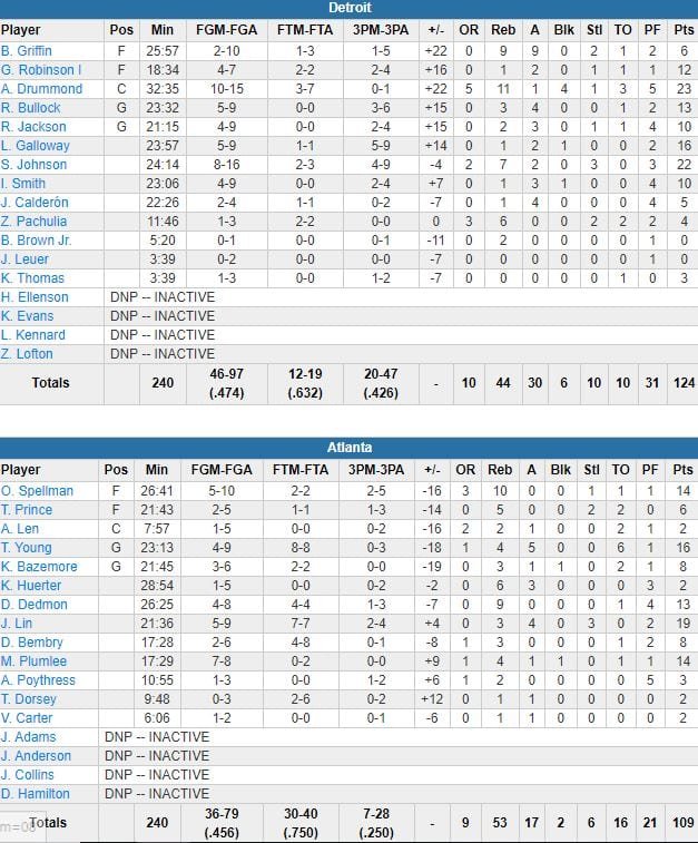 Atlanta Hawks – Detroit Pistons 109-124