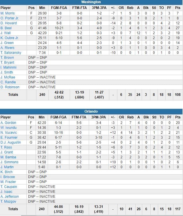 Orlando Magic – Washington Wizards 117-108