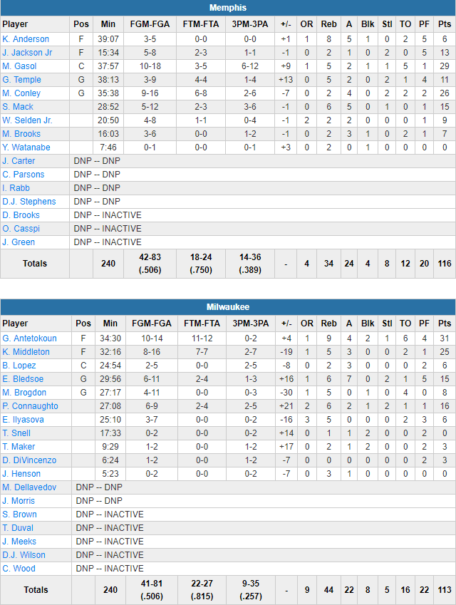 Milwaukee Bucks – Memphis Grizzlies 113-116