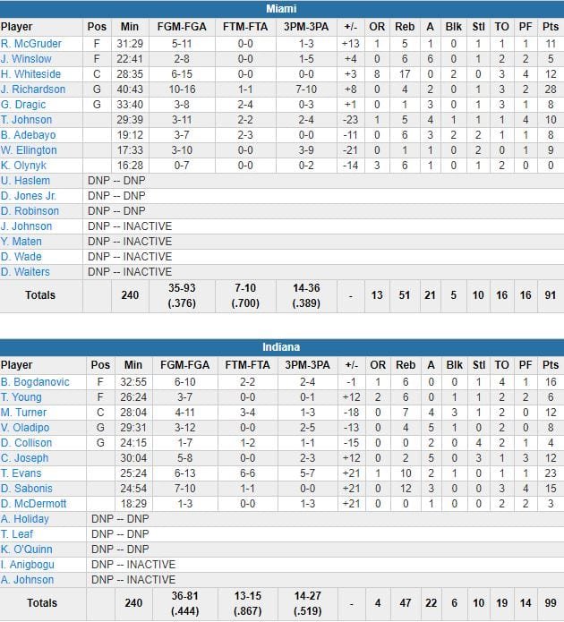 Indiana Pacers – Miami Heat 99-91