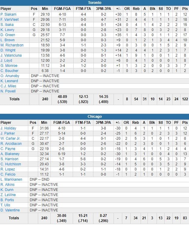Chicago Bulls – Toronto Raptors 83-122