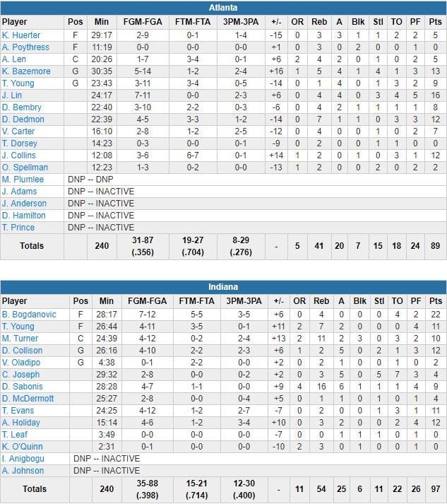 Indiana Pacers – Atlanta Hawks 97-89