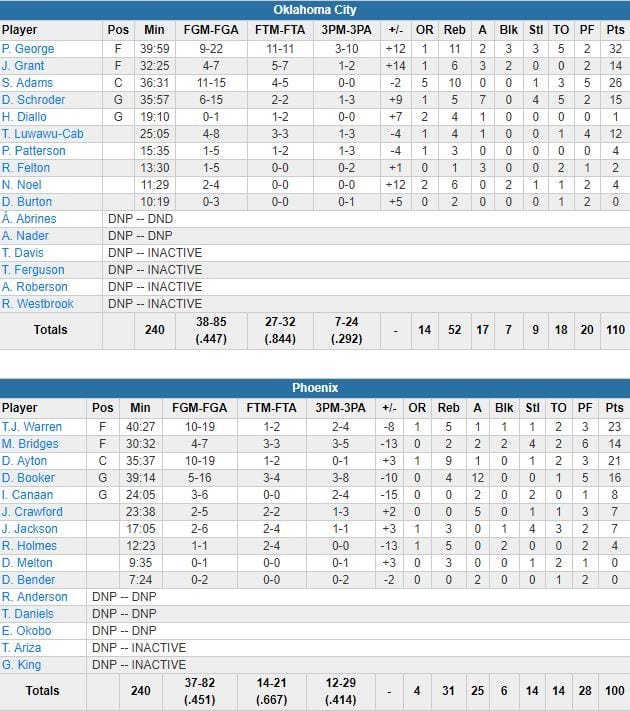Phoenix Suns – Oklahoma City Thunder 100-110