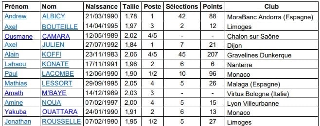 Le 25 octobre dernier Vincent Collet avait dévoilé un groupe de 12 pour la prochaine fenêtre de qualifications pour la coupe du monde, mais à quelques jours des deux matchs, il y a du changement. Ousmane Camara, Amath M’Baye et Yakuba Ouattara ont été appelés pour remplacer les blessés Moustapha Fall, Charles Kahudi et Louis Labeyrie.