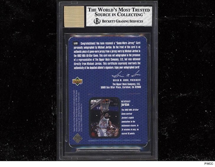 Selon TMZ une carte Upper Deck 1997 de Michael Jordan portant un maillot du All-Star Game et signé de sa main, a été vendue à un prix fou de 95 000$. Le prix est dû au fait qu’il n’existe que 23 exemplaires de cette carte.