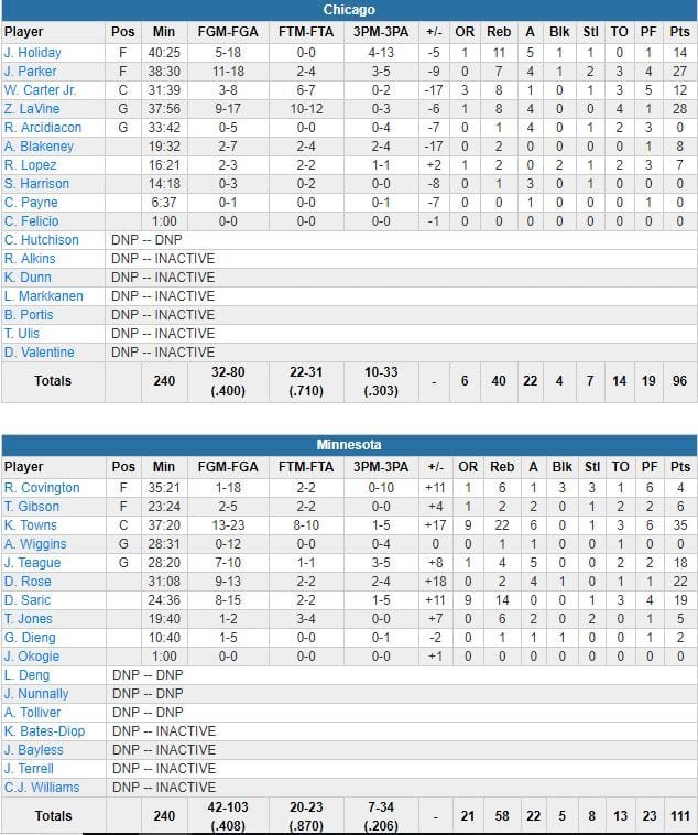 Minnesota Timberwolves – Chicago Bulls 111-96