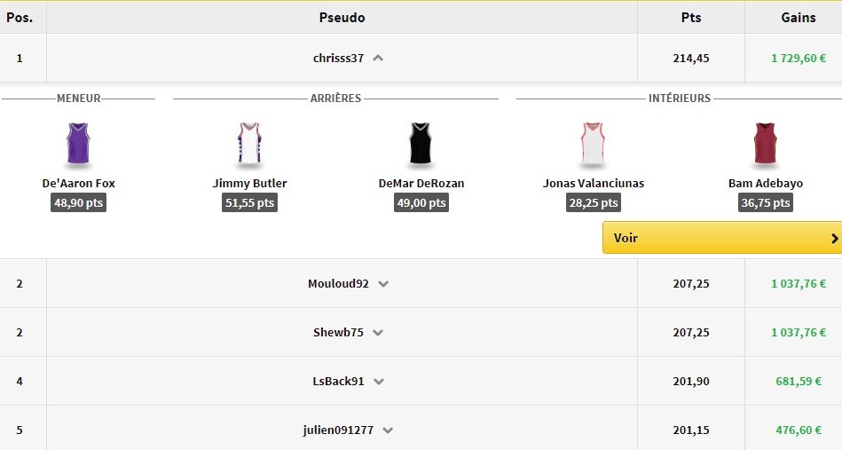 La saison NBA et donc celle du Jeu de l’Entraîneur de Winamax (profitez des bonus d’inscription ici) battent leur plein, et hier il y avait encore pas mal de participants : 6 833 cinq majeurs inscrits au contest à 2€ sur la soirée et 10 249,50 € à se partager.