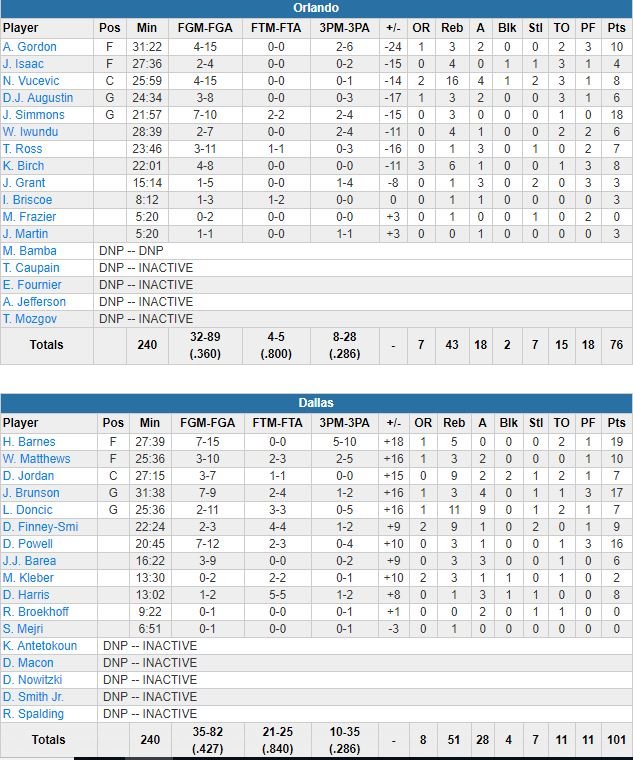 Dallas Mavericks – Orlando Magic 101-76