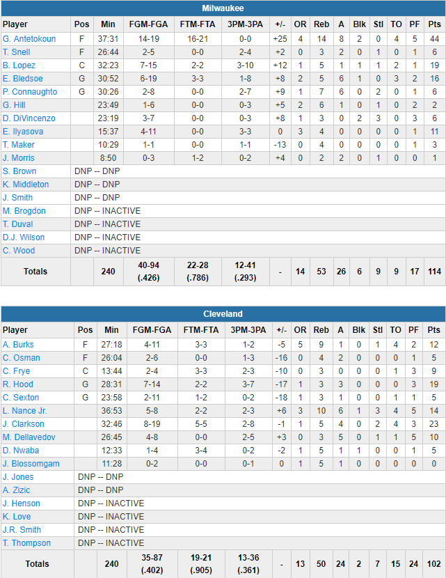 Cleveland Cavaliers – Milwaukee Bucks 102-114