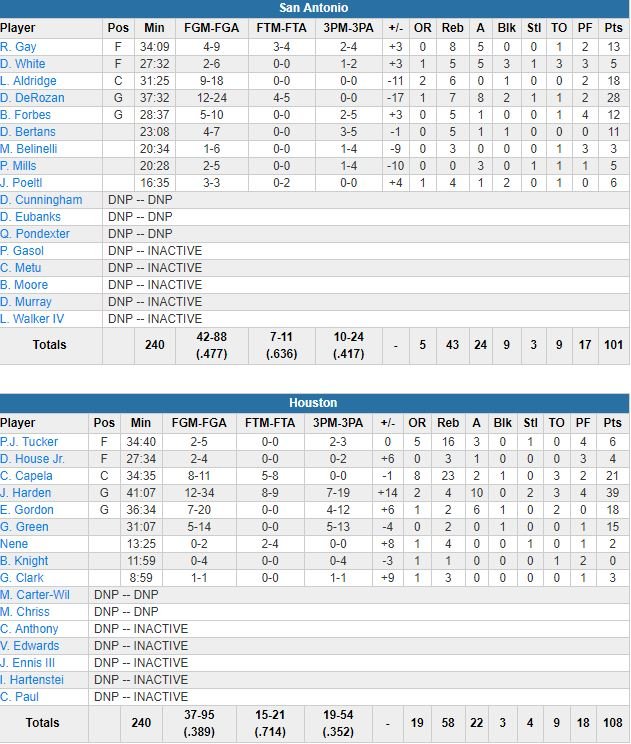 On notera surtout que harden a eu autant de lancer franc que toute l'equipe de SA réuni surtout. flopper, arreter de flopper!