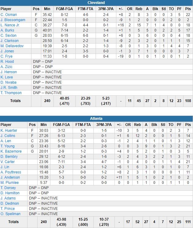 Atlanta Hawks – Cleveland Cavaliers 111-108