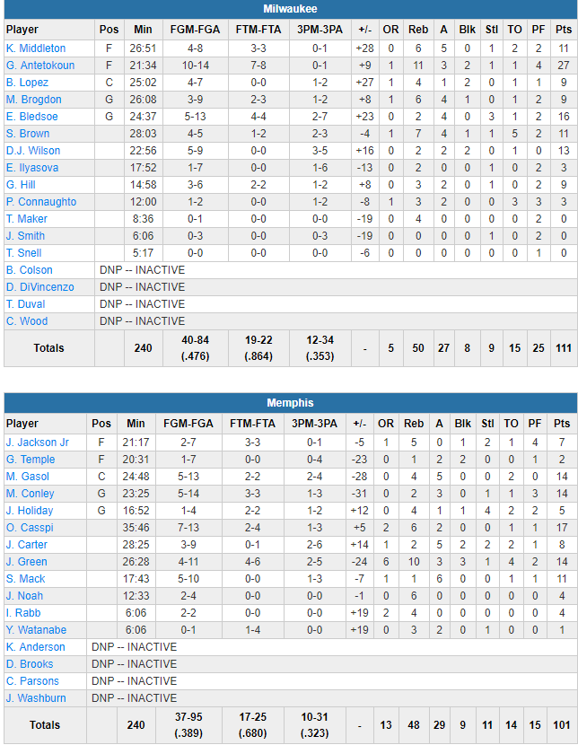 Memphis Grizzlies – Milwaukee Bucks 101-111