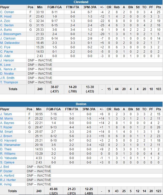 Le meneur a signé 22 de ses 26 points (9/13, 16 points à 6/6 dans le 1er quart-temps) en 1ère mi-temps mais aussi compilé 8 rebonds et 6 passes en même pas 30 minutes de jeu face à Cedi Osman (25 points à 8/11, 8 rebonds), Ante Zizic (19 points à 9/17 et 8 rebonds) & Co. Il a aussi rentré un shoot à plus de 9 mètres au buzzer de la mi-temps (65-50 Boston).