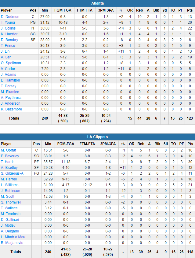Très mauvaise opération pour les Los Angeles Clippers, qui s’inclinent devant leur public face aux Atlanta Hawks sur le score de 123-118. C’est la 16me victoire des Hawks pour 33 défaites et cela met fin à la série de 3 succès des hommes de Doc Rivers qui ont désormais un bilan de 28-23.