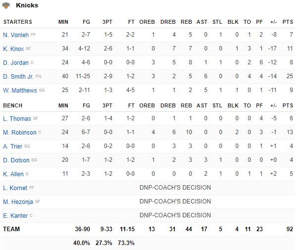 New York Knicks – Detroit Pistons 92-105