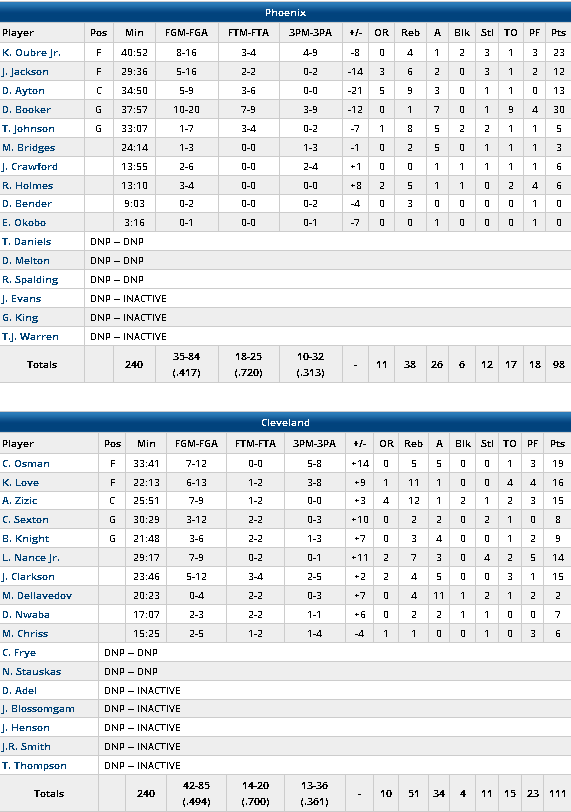 Cleveland Cavaliers – Phoenix Suns 111-98