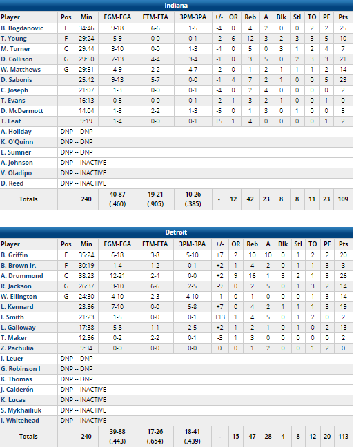 Detroit Pistons – Indiana Pacers 113-109