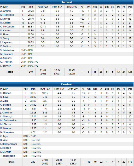 Cleveland Cavaliers – Portland Trail Blazers 110-123