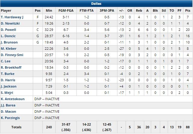 À 56.5% sur le match, les Nets ont limité leurs adversaires à 35.6%. Devant 31-21 après un quart-temps, ils sont vite montés à +18, un écart qu’ils ont maintenu à la pause malgré un tir du milieu de terrain réussi par Doncic. Après 3 quarts-temps, l’écart était de 26 points. Dirk Nowitzki a joué 19 minutes pour 4 points à 2/13.
