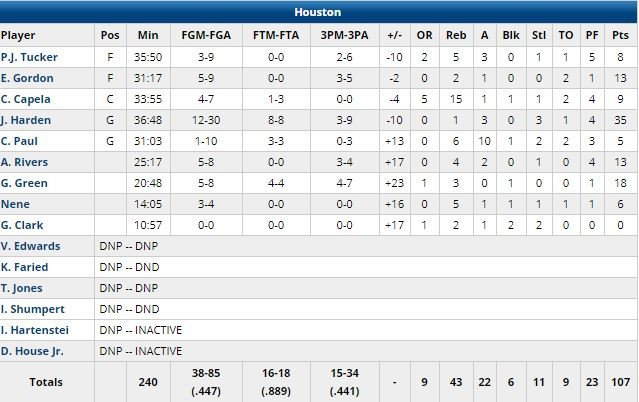 Chris Paul a terminé à 5 points à 1/10 et 10 passes, Clint Capela 9 points à 4/7 et 15 rebonds.